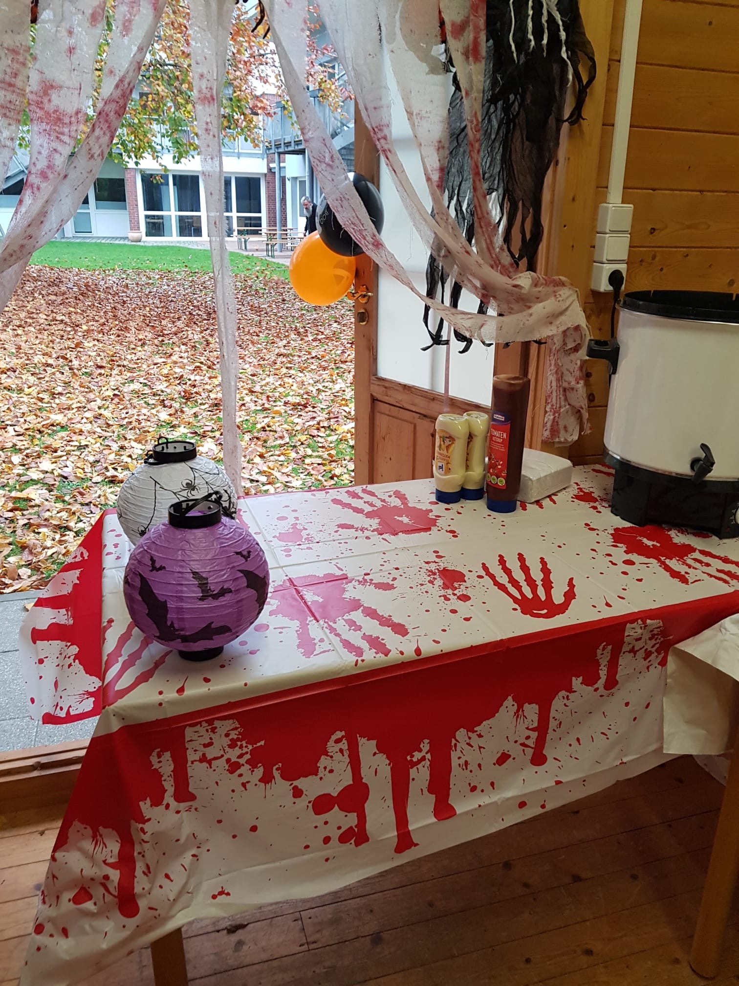 Unser Team der Haustechnik hat sich mal wieder etwas ganz besonderes überlegt: Der Geräteschuppen im Garten wurde zu einem Halloween-Imbiss umdekoriert. Mit viel Liebe zum Detail schmückte das Team die Holzhütte, den Garten und verkleidete sich dem Anlass entsprechend selbst. Zahlreiche Kinder kamen kostümiert und feierten bei Curryurst/Pommes und Kinderpunsch einen schaurig schönen Gruselnachmittag. Danke an das Team der Haustechnik für eure Mühen und diese tolle Aktion!