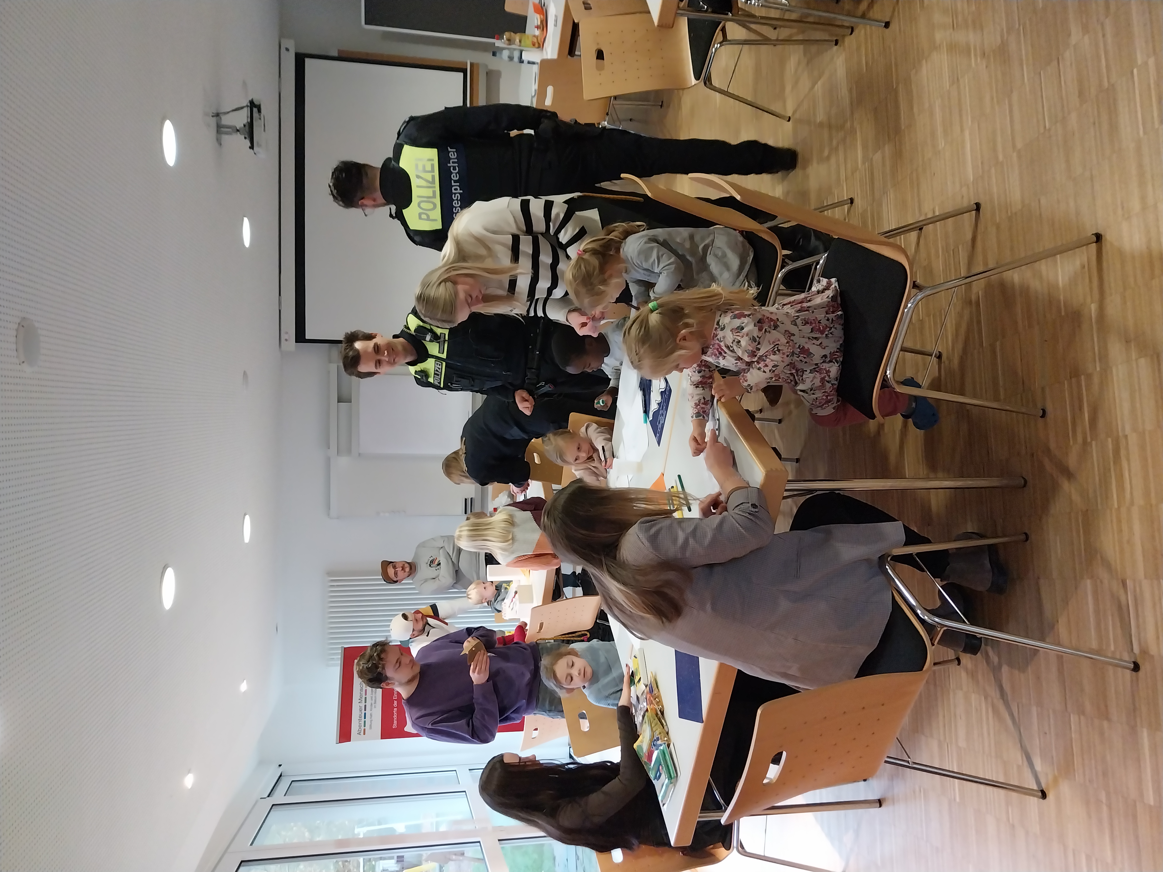 Mittlerweile hat der Besuch der Polizei fast schon Tradition. Kinder aus unseren Wohngruppen gestalten gemeinsam mit den uniformierten Kolleginnen und Kollegen kreative Wunschzettel, die dann in der Polizeiinspektion aushängen. Nach der Bastelaktion folgte dann das Highlight: das Polizeiauto durfte inspiziert und bespielt werden - Blaulicht, Martinshorn und jede Menge Zubehör wurden bestaunt und ausprobiert. Da einige Kinder im häuslichen Umfeld bereits negative Erfahrungen mit der Polizei gemacht haben, diente der Besuch auch dazu, Ängste und Scham abzubauen. Die Mitarbeitenden der Polizei beantworteten geduldig alle Fragen und haben bei den Kleinsten einen sehr vertrauenswürdigen Eindruck hinterlassen. Wir freuen uns schon auf nächstes Jahr!